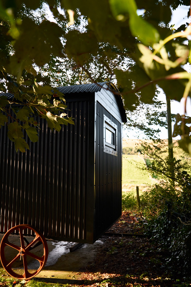 Our shepherds hut was built using the traditional chassis and iron wheels, has solid insulated walls and noise reducing roof insulation. Windows and doors are solid timber with cast iron ironmongery and double glazing. It has electricity and running water so is a comfortable and modern space despite its heritage.
