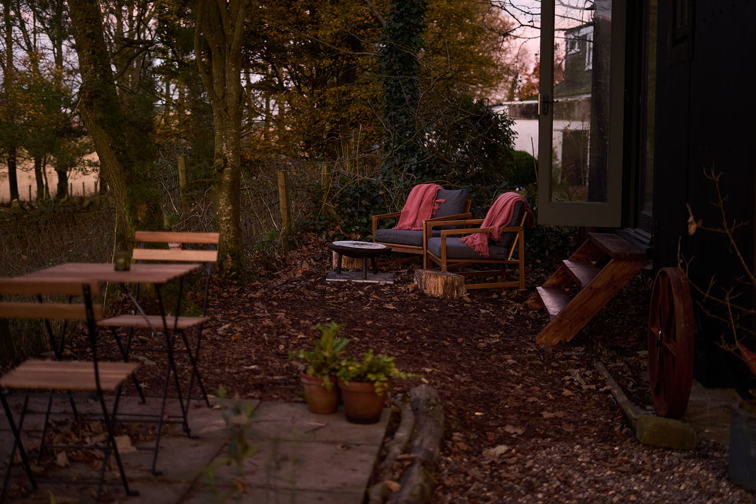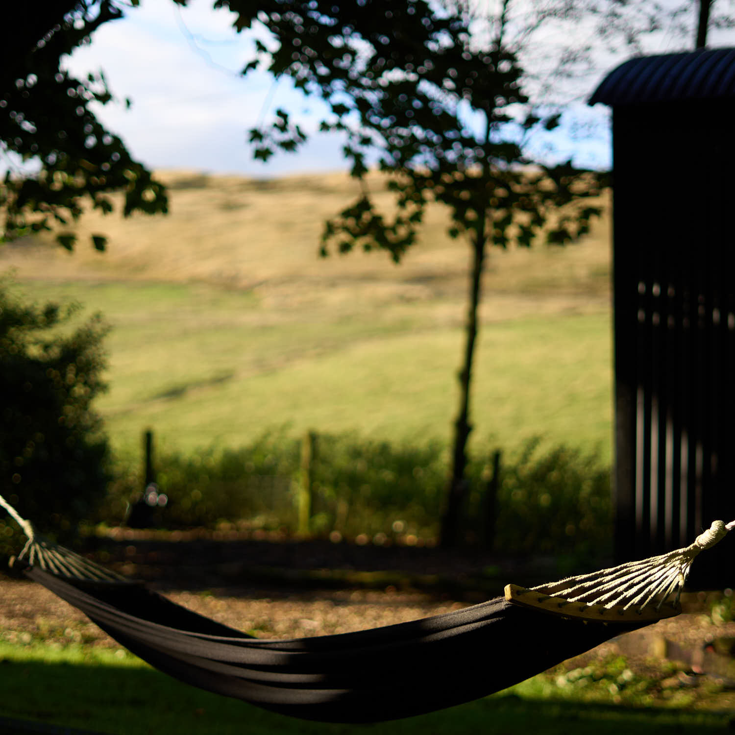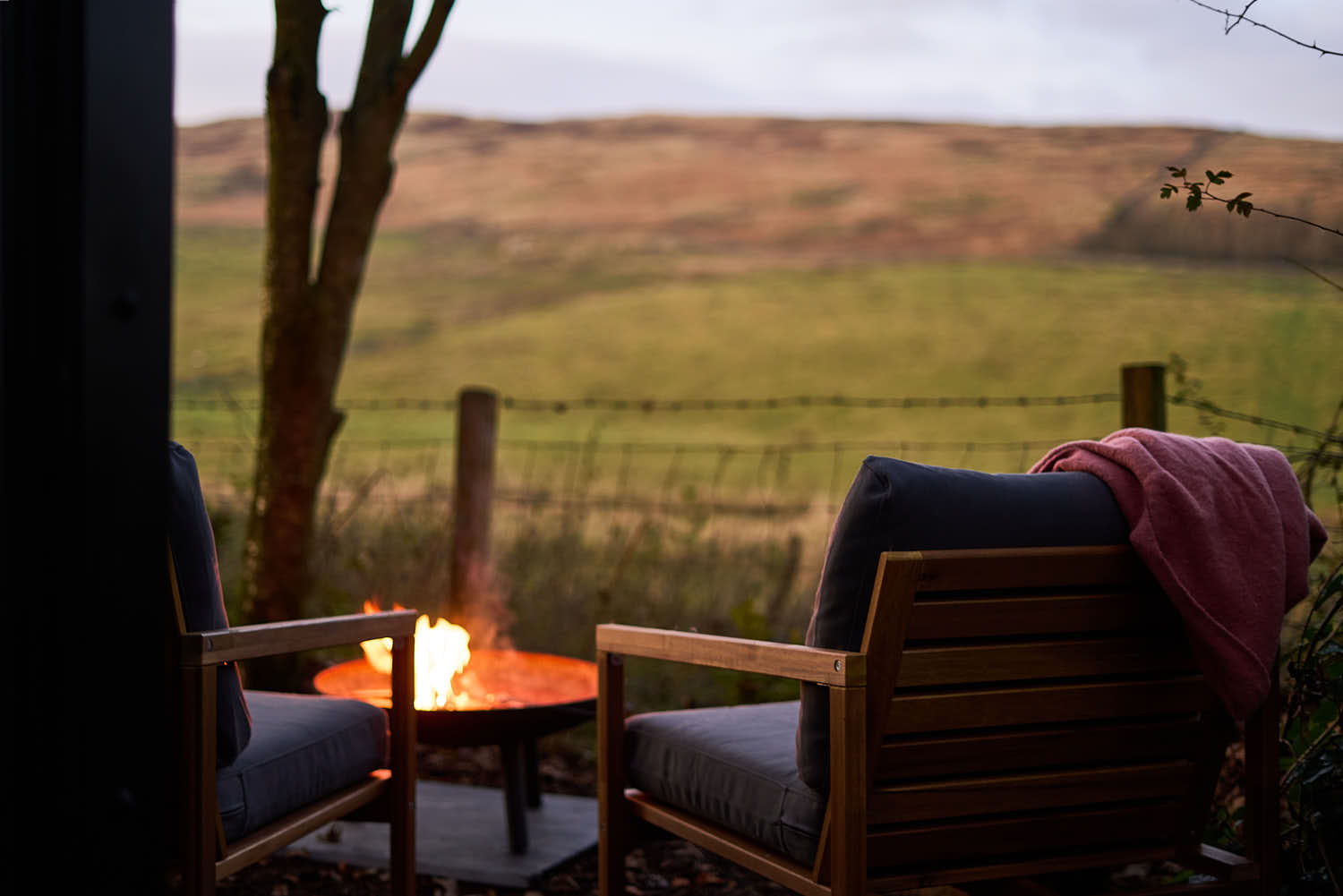 Our hut is cosy and luxurious with everything you need for a comfortable stay with a King sized bed, a premium Emma mattress and comfy seats to relax and unwind after a day exploring. You will also have exclusive use of our brand new outdoor sauna with views of Steel Rigg.